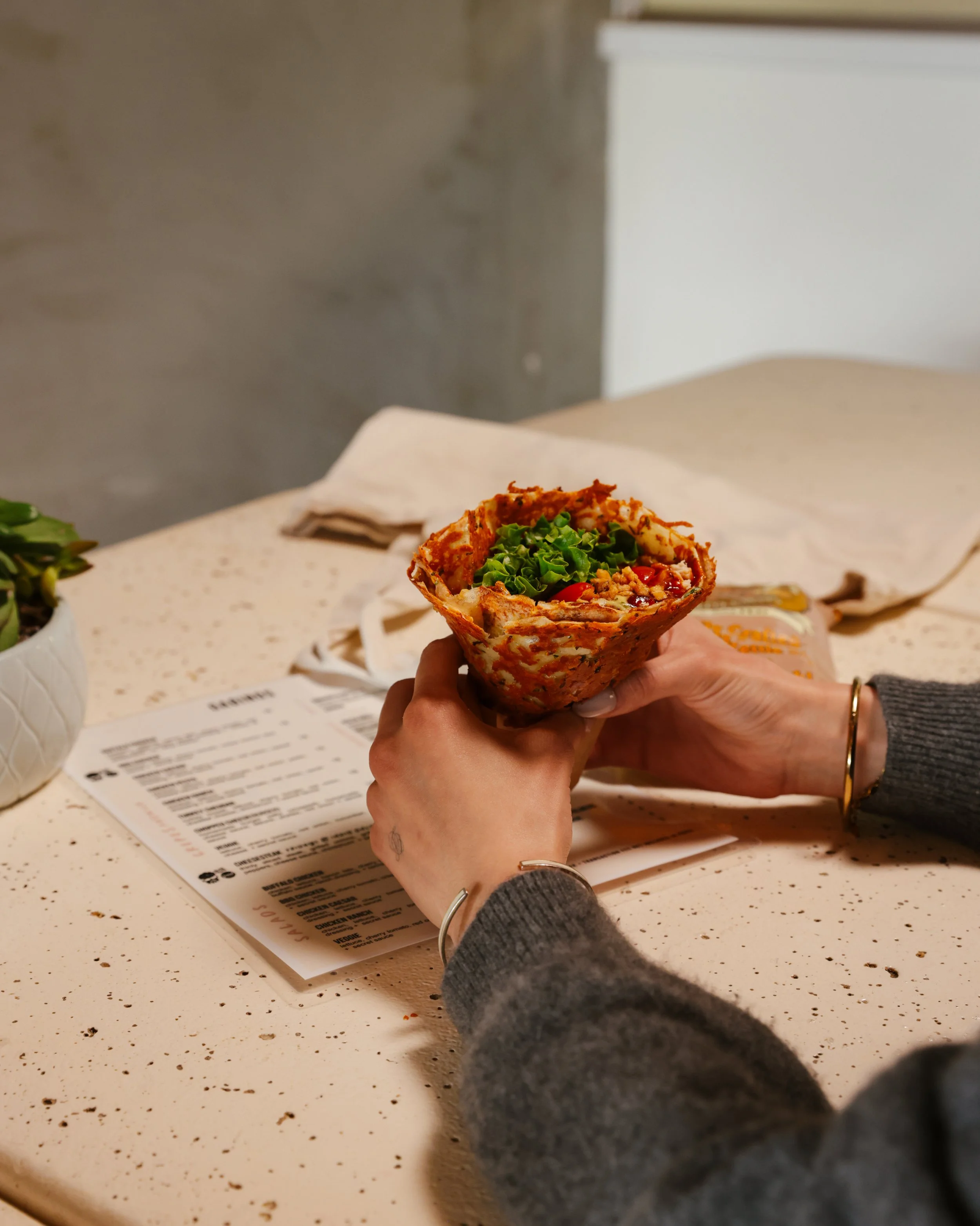 First, you’ll experience the soft and crispy layer of cheesy crepe. Then you’ll journey into the rich, explosion of the fresh ingredients nestled inside. Finally, you’ll experience that mind-blowing and unexpected wow everyone talks about!
